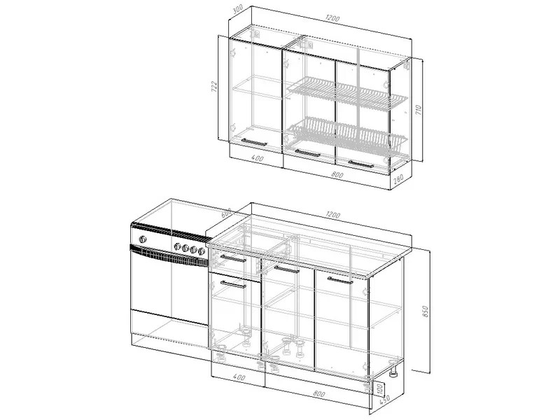 Ширина кухни: 1200 мм