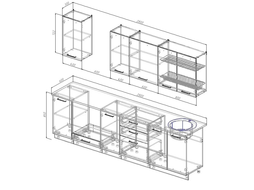 Ширина кухни: 2800 мм