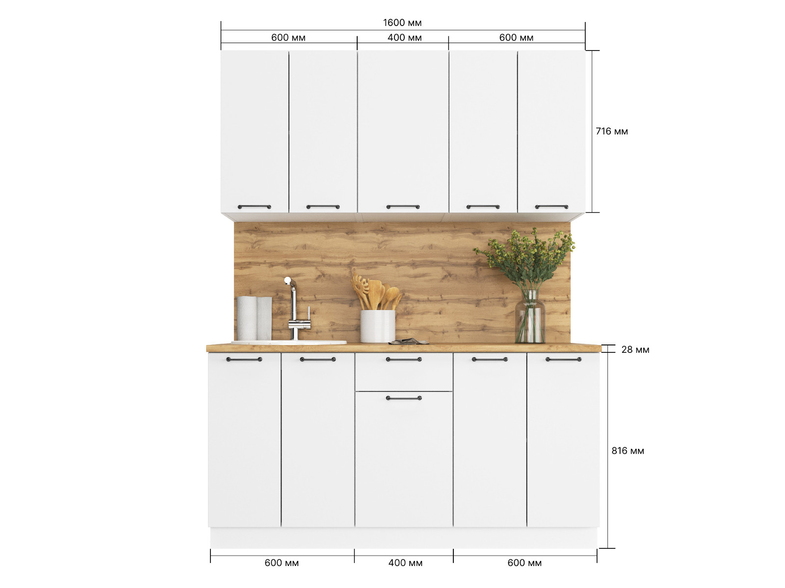 - Кухонный гарнитур Валерия 1600 мм МДФ Белый/Белый