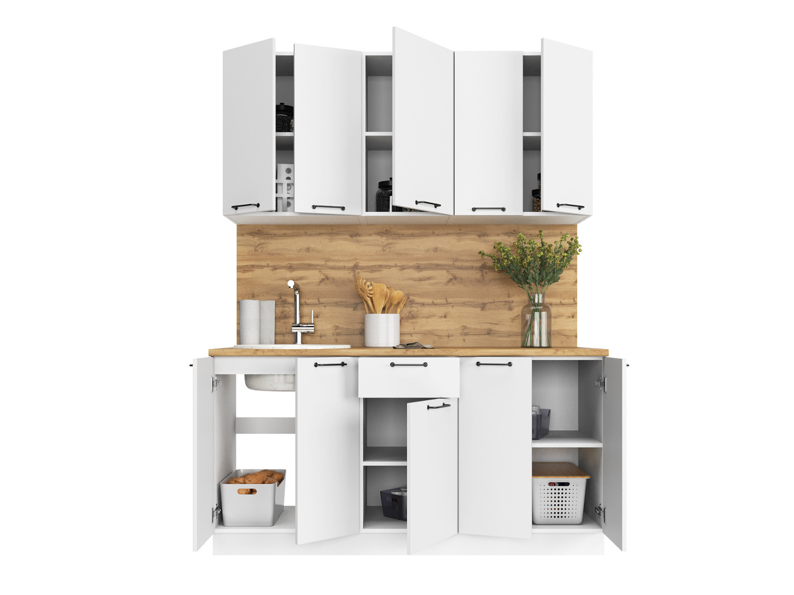 - Кухонный гарнитур Валерия 1600 мм МДФ Вотан/Белый