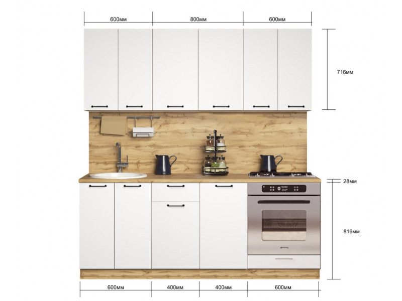 - Кухонный гарнитур Валерия 2000 мм МДФ Вотан/Белый со шкафом под духовку