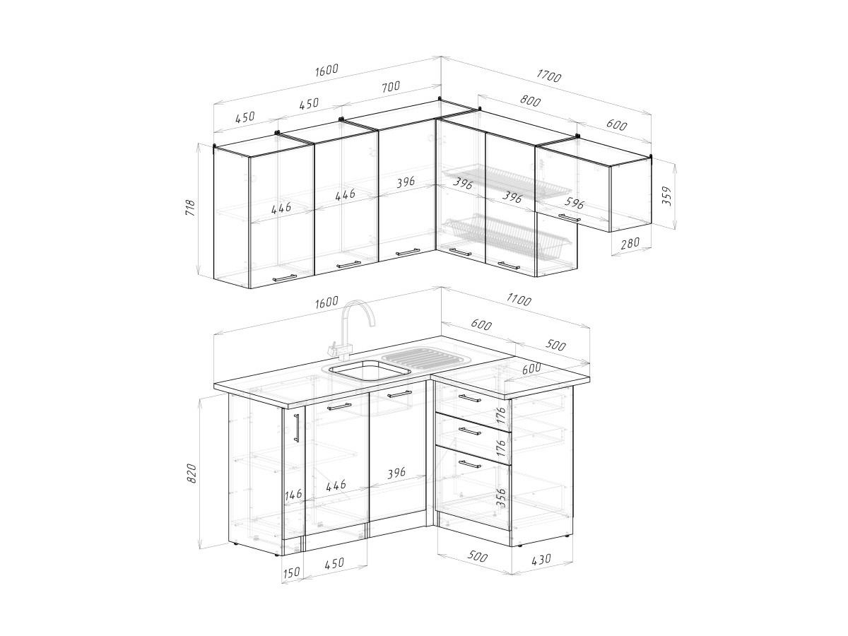 Кухонный гарнитур Альта мега прайм 1600х1700 мм