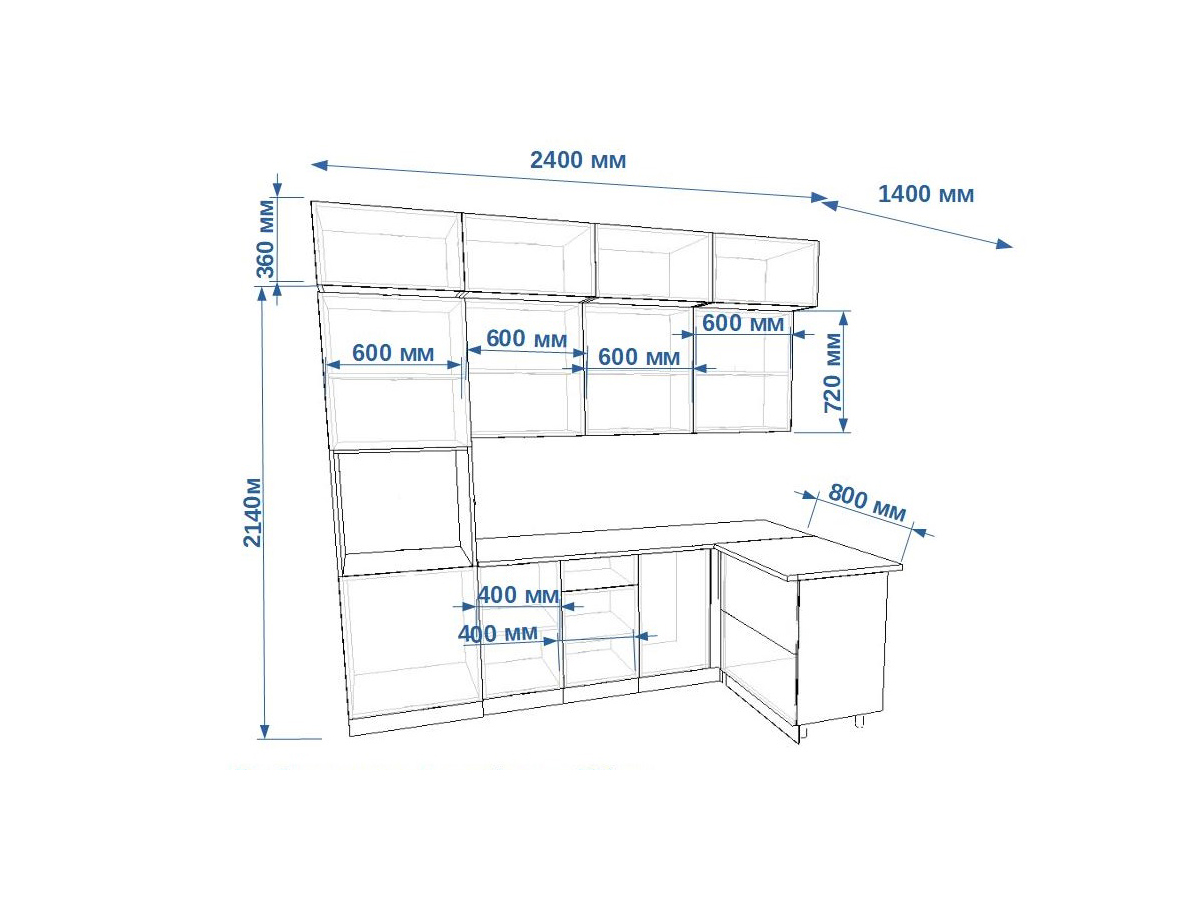 - высота верхних шкафов 720 мм