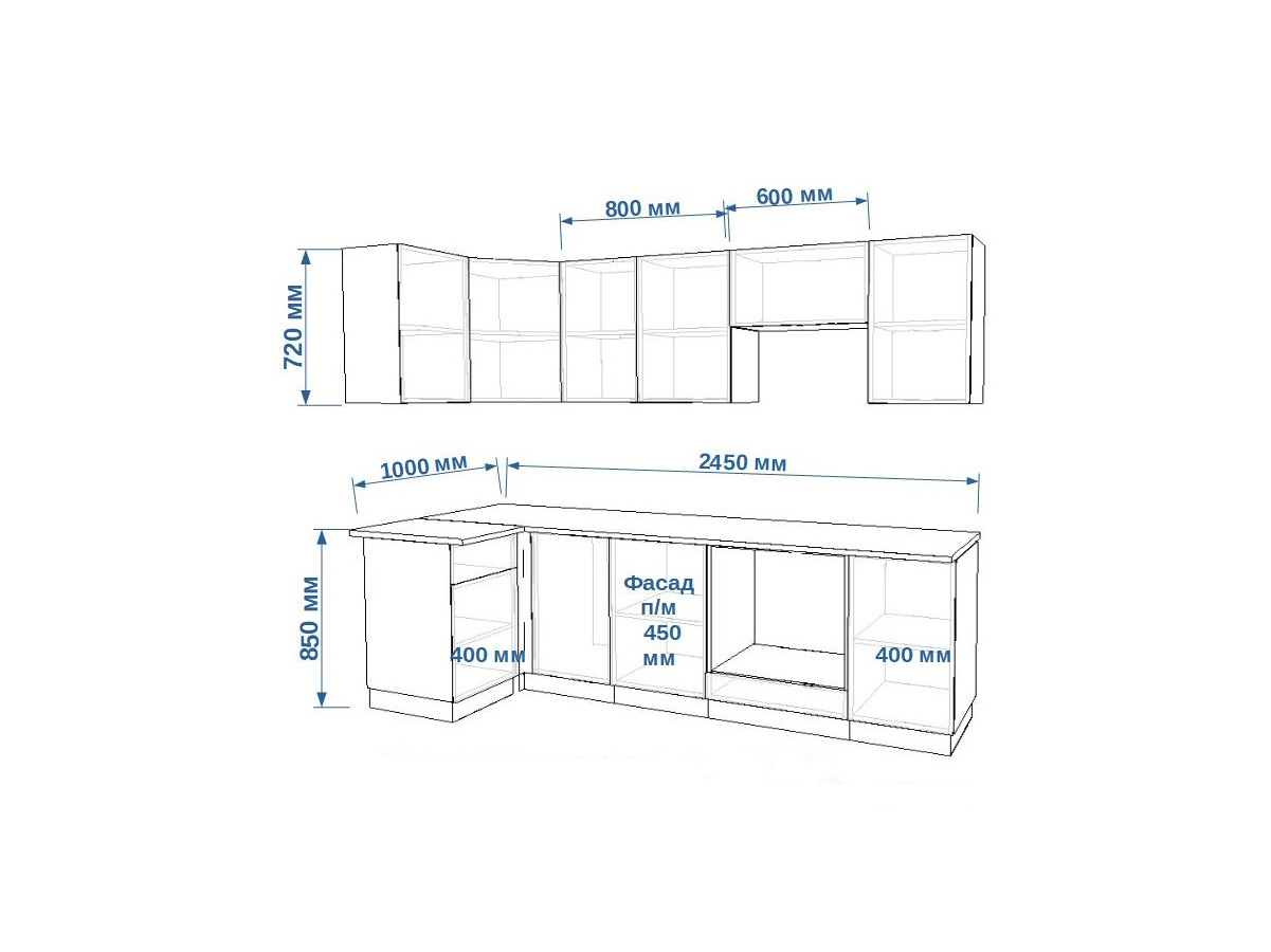 - высота верхних шкафов 720 мм