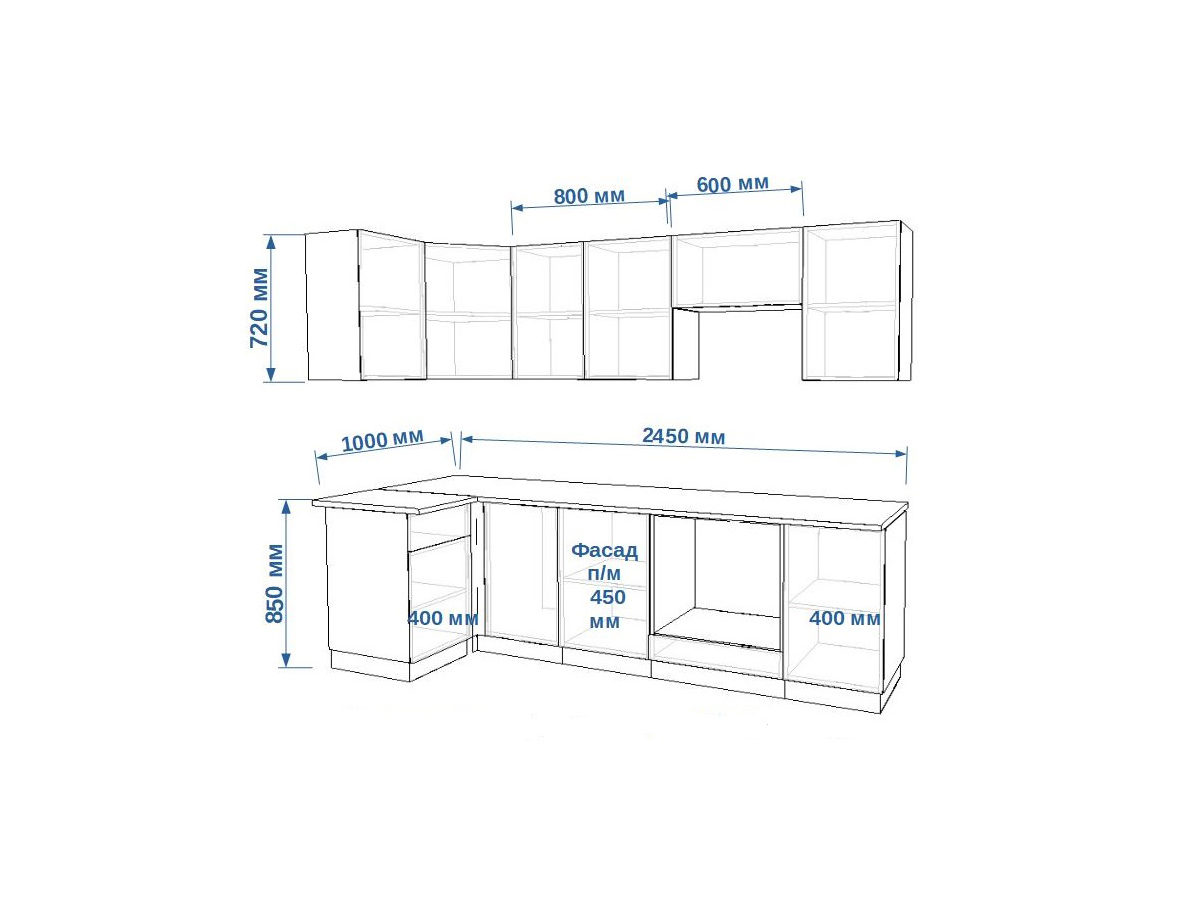 - Кухонный гарнитур арт 25 Лайн Фарфор 1000х2450 мм