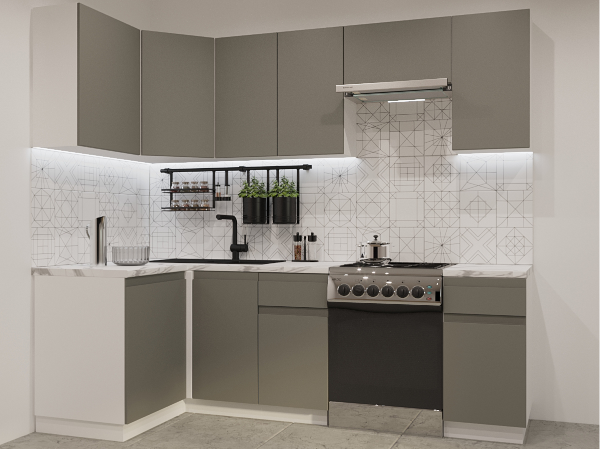 - Кухонный гарнитур арт 30 Лайн Обсидиан 1200х2400 мм