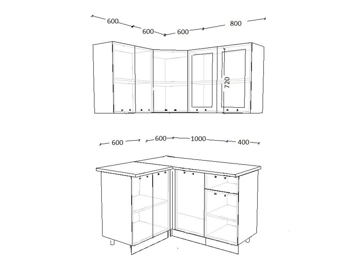 - высота верхних шкафов 720 мм