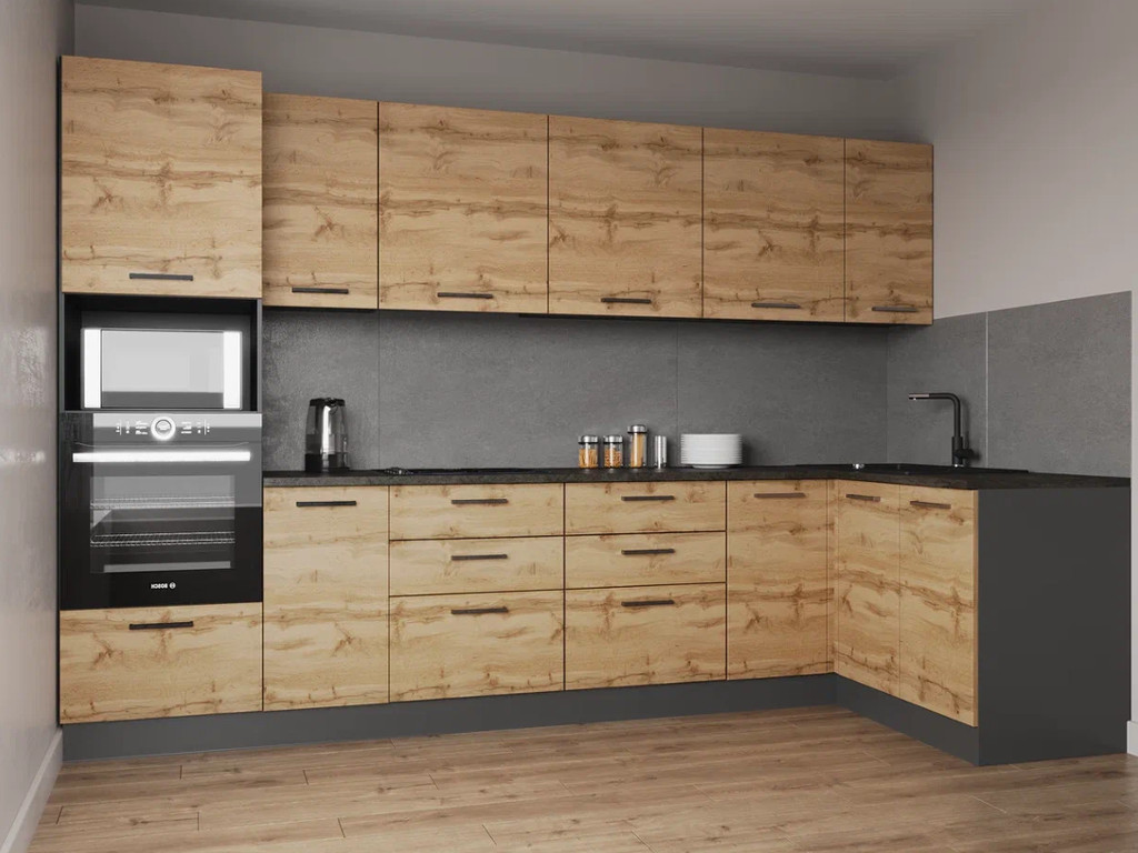 Кухонный гарнитур арт 8 Фаска Обсидиан Дуб сонома 2400х1400 мм