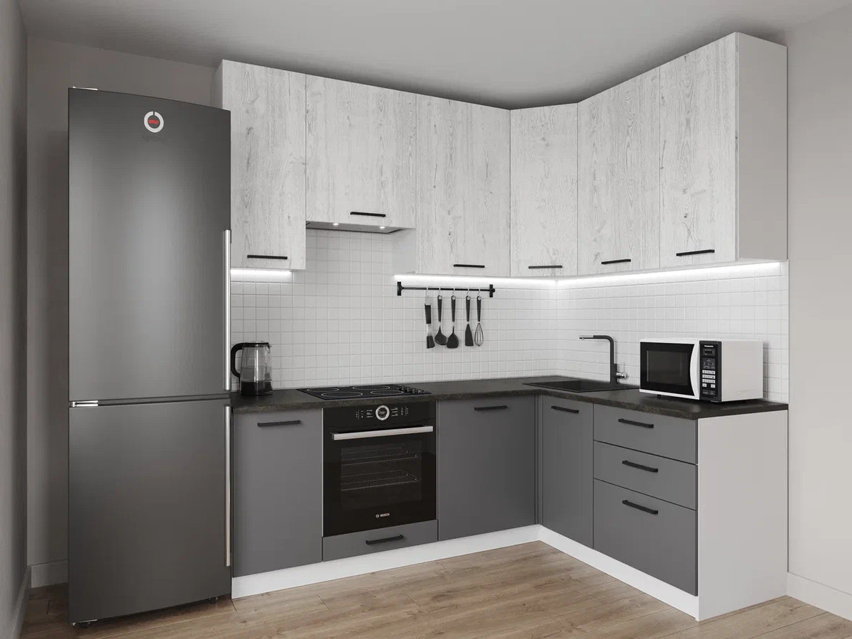 - Кухонный гарнитур Санторини 2200х1600 (верх 950 мм) МДФ