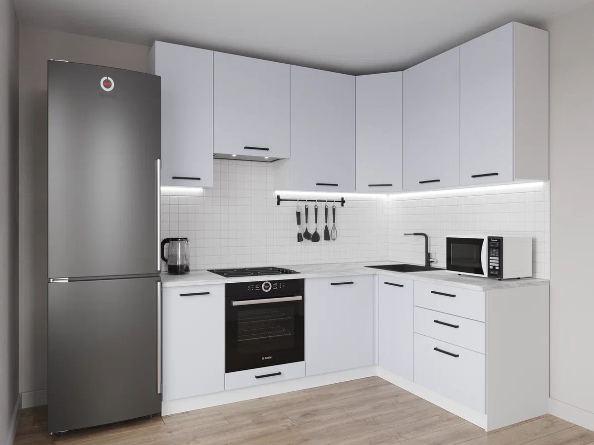 Кухонный гарнитур Смоки 2200х1600 (верх 950 мм) МДФ