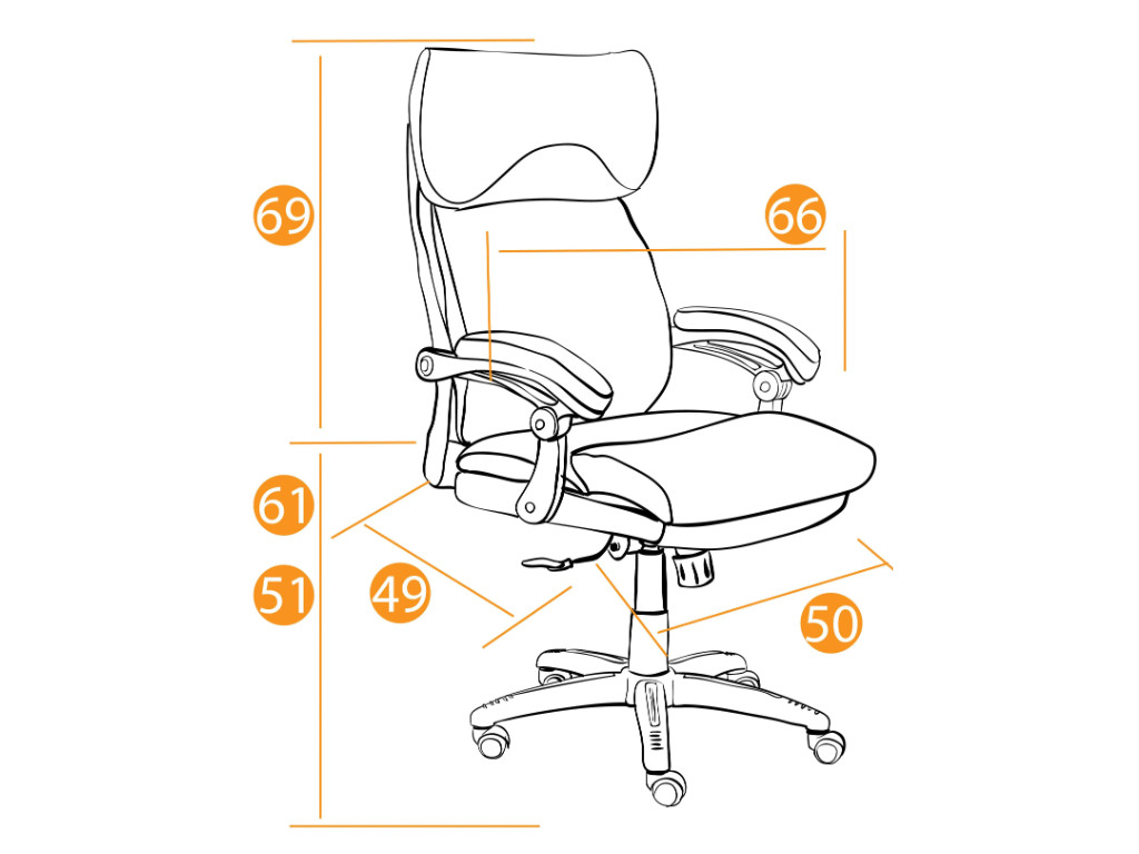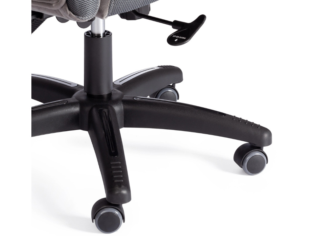 - Пластиковая крестовина и шарнирные подлокотники с накладками.