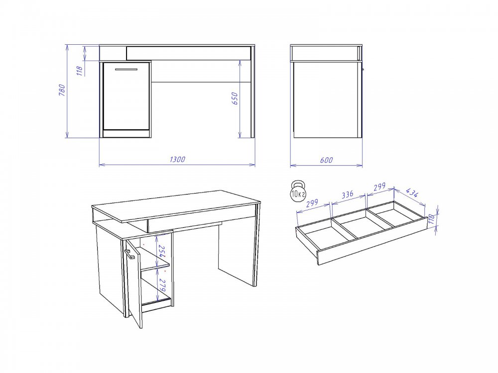 Размер ШхГхВ: 1300*600*780 мм