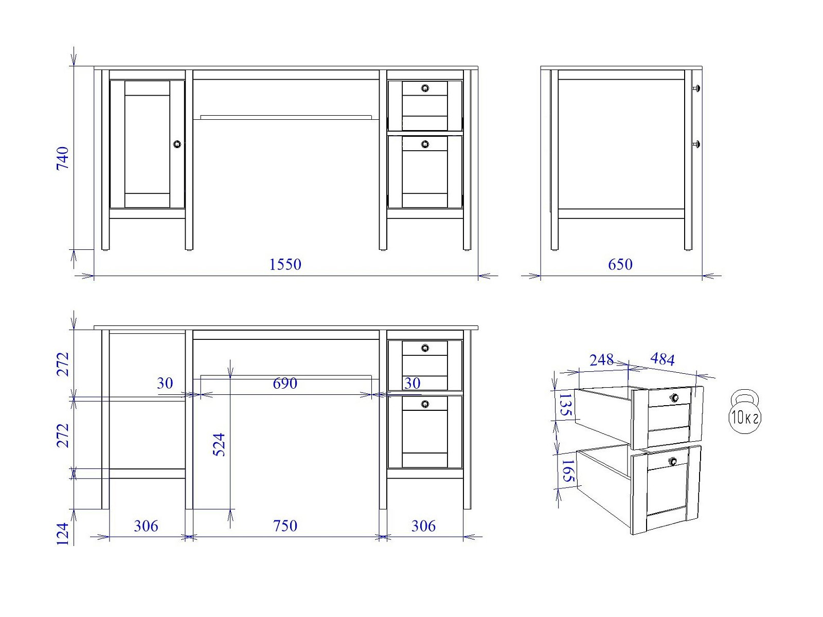 Макс.нагрузка на ящик (кг): 10