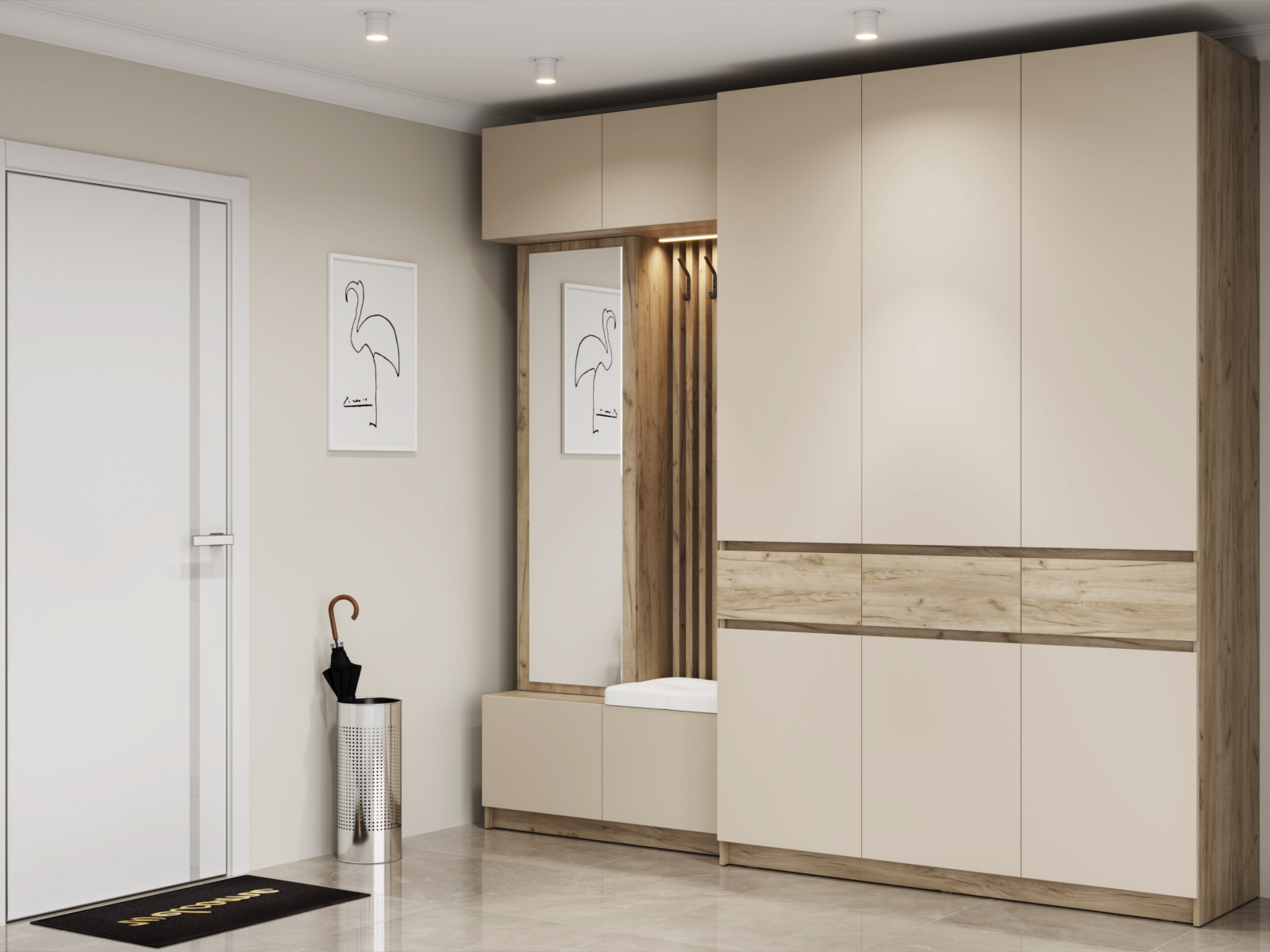 - Модульная прихожая Бостон ЛДСП кашемир с трехдверным шкафом