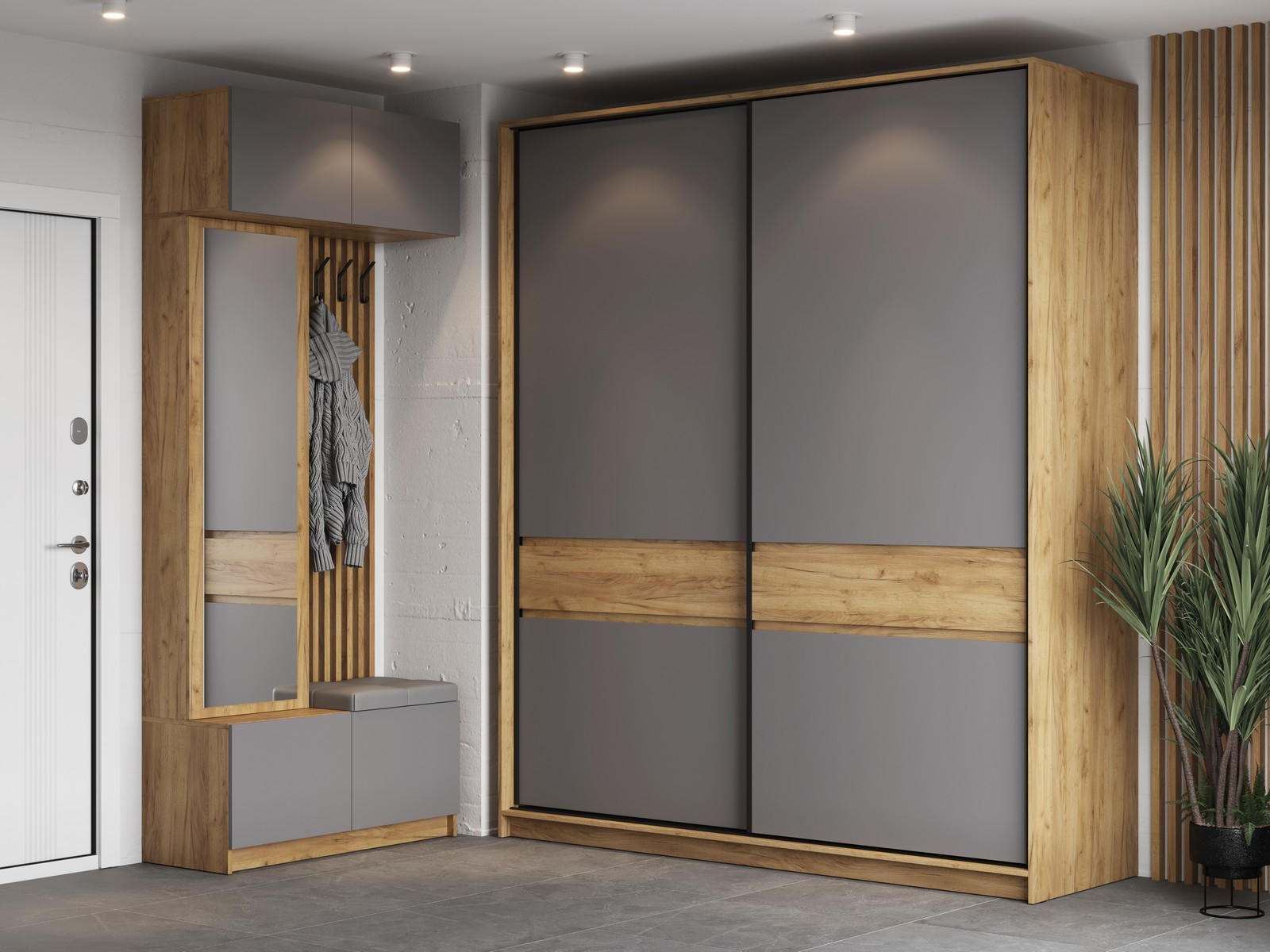 Модульная прихожая Бостон ЛДСП серый шифер со шкафом купе