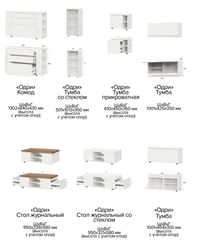 - Тумба ( 23,7 кг; 0,0442 м3) ( с опорами - 501х1013х350; без опор - 501х988х350мм мм)