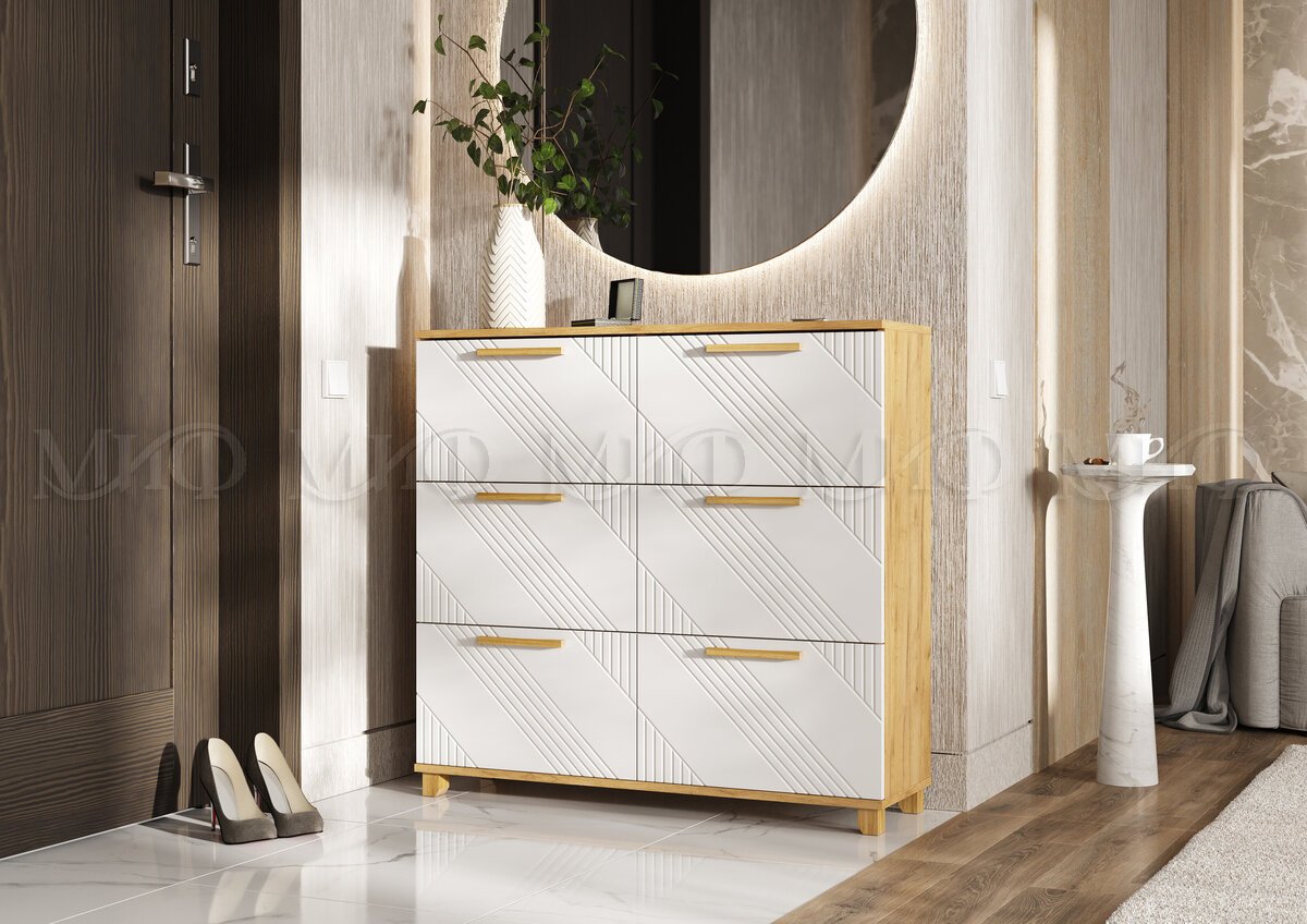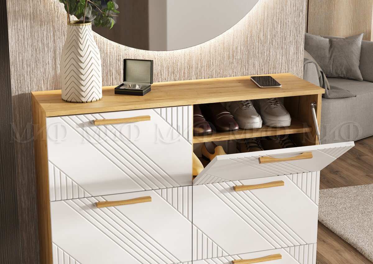 - Обувница (1000) Ирис Браш Вайт, Дуб Крафт