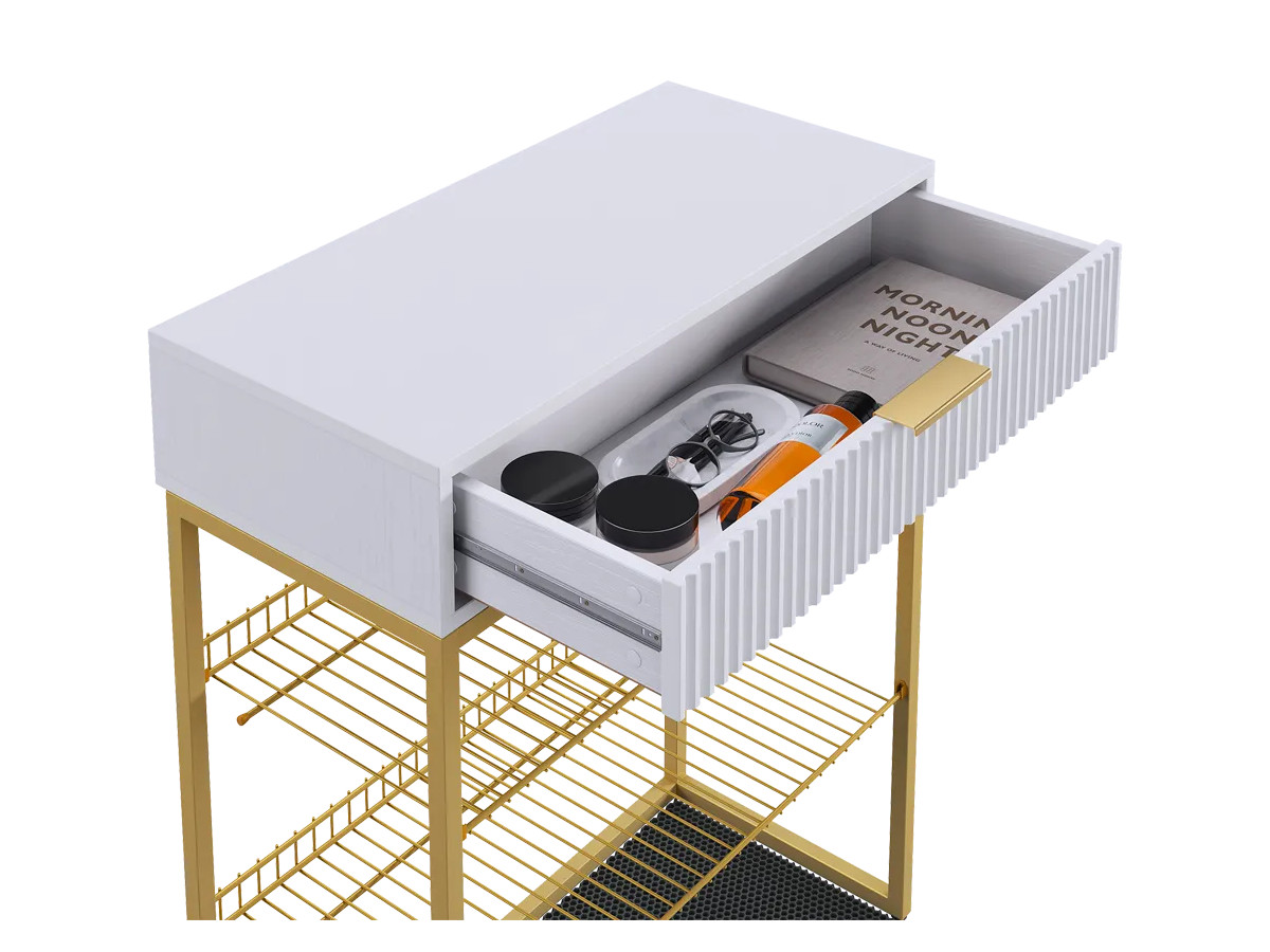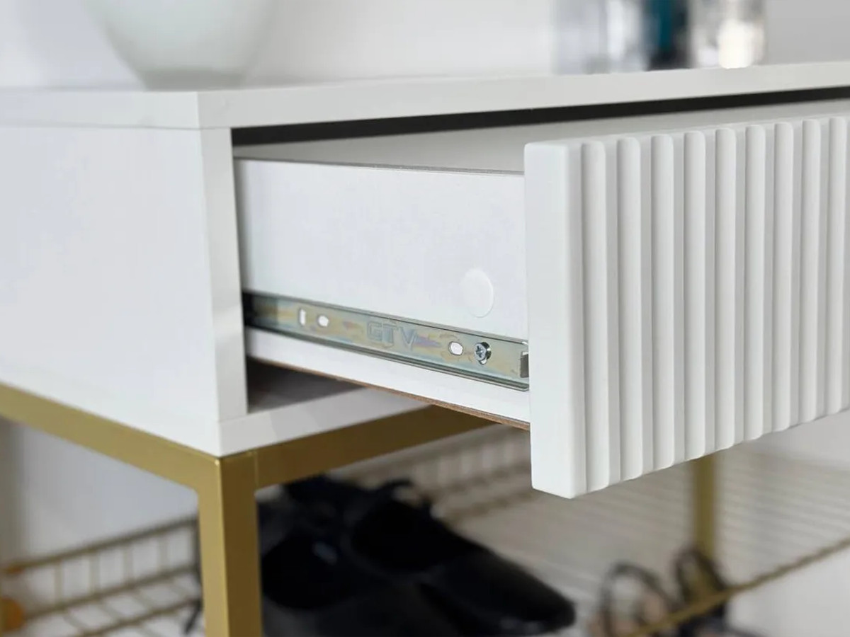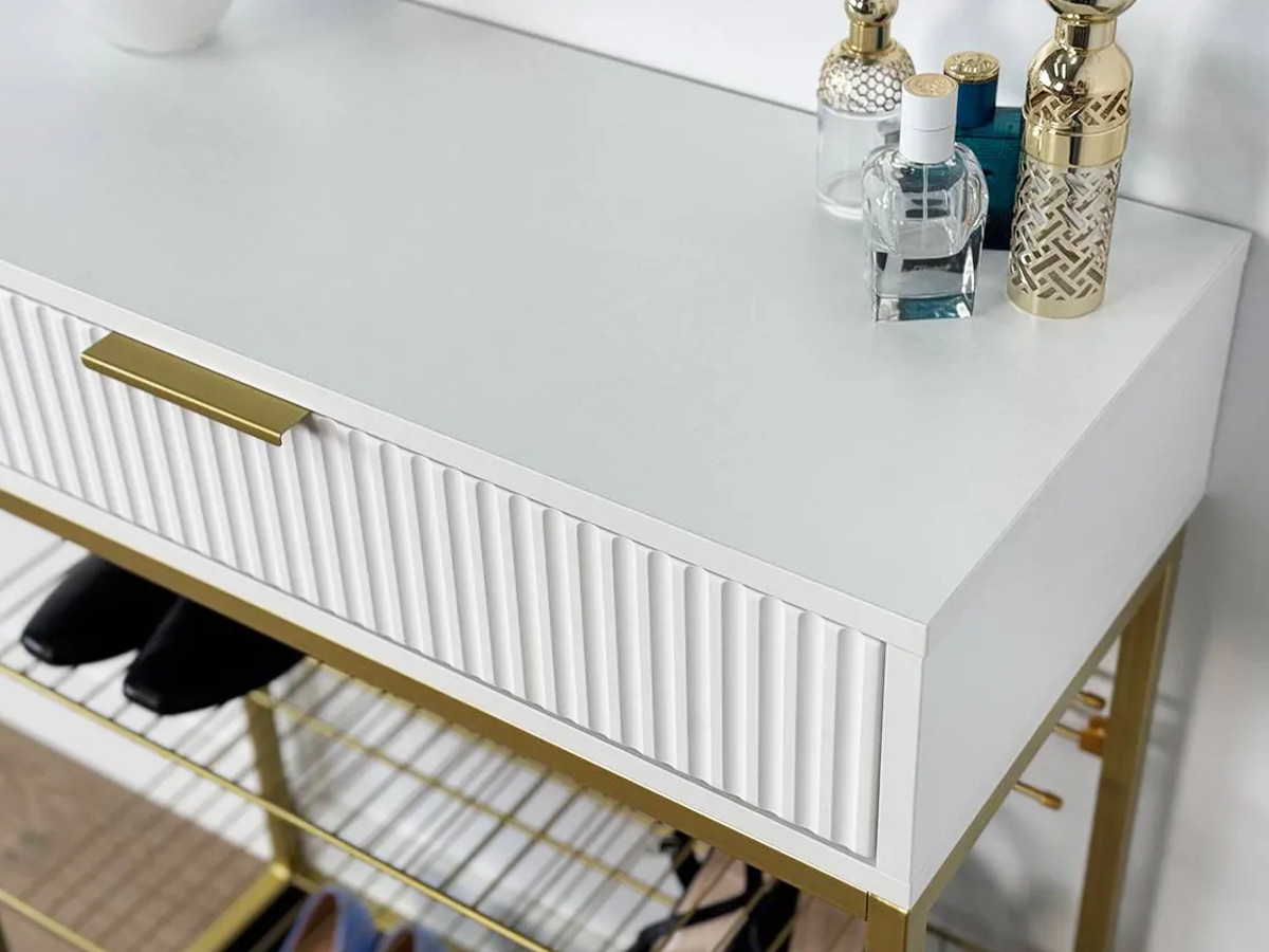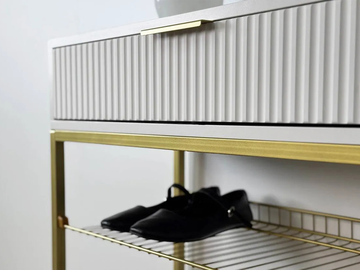- Обувница Вельвет белое дерево/белый матовый/золото