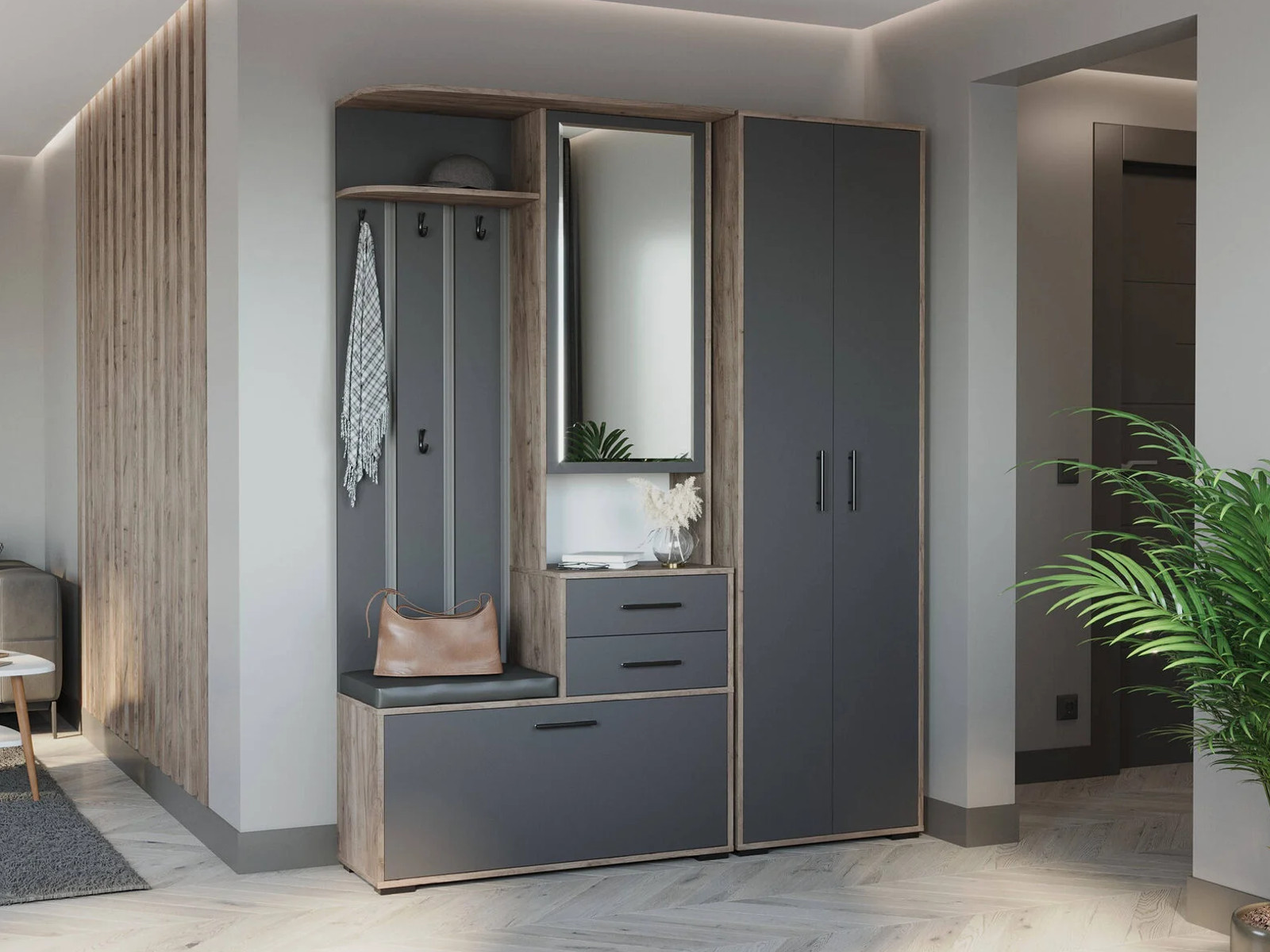 - Прихожая Домино со шкафом Дуб Крафт Табачный, Графит