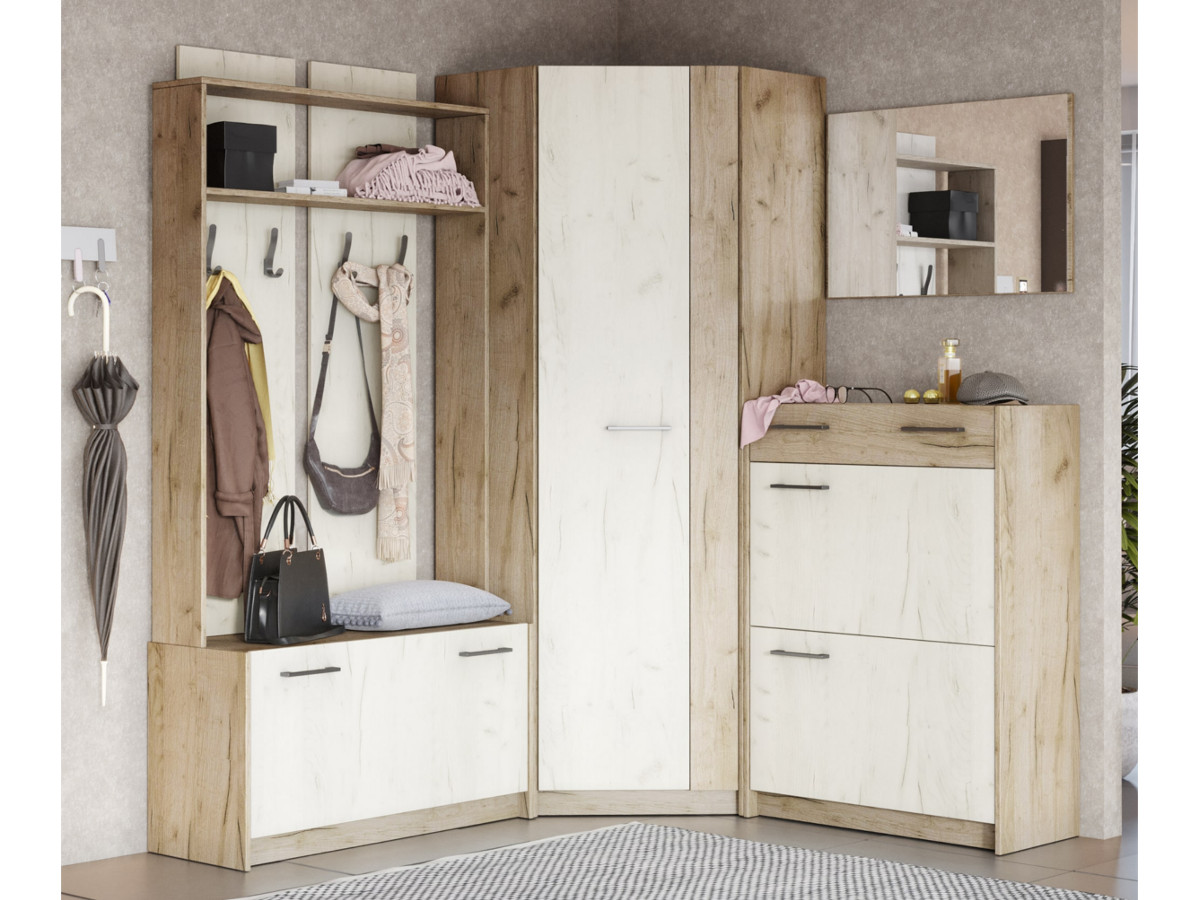 Цена за модули: вешалка, угловой шкаф без зеркала, зеркало, тумба для обувиа