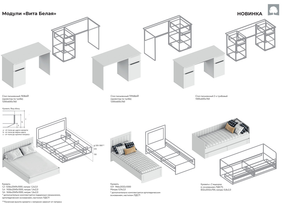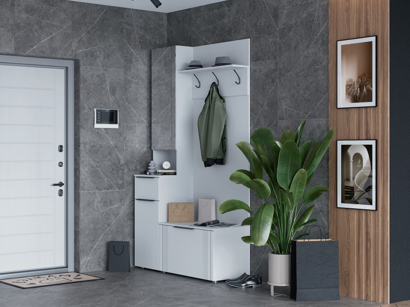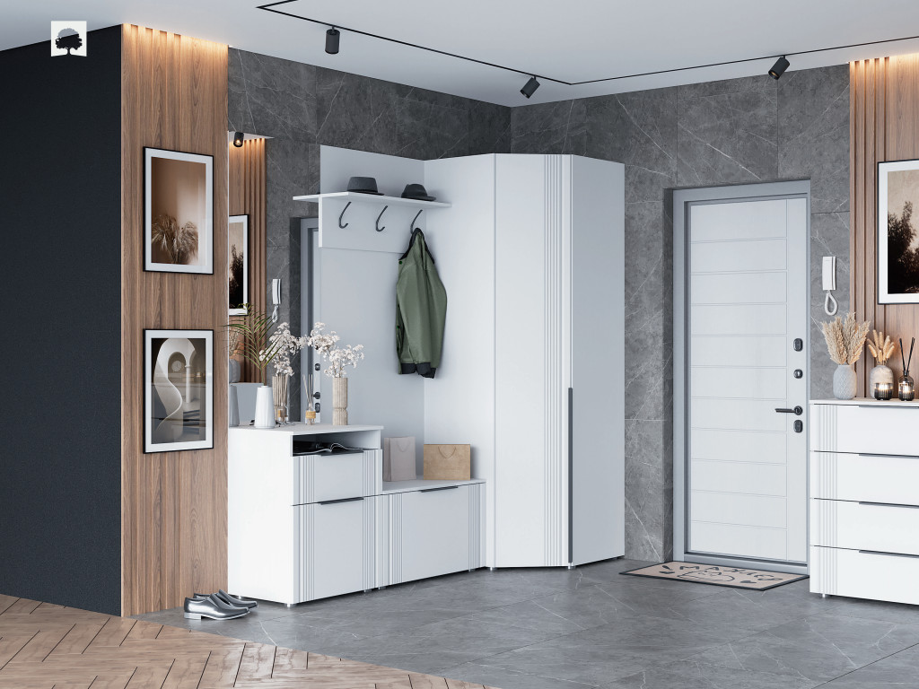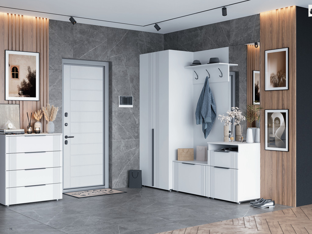 Цена за комплект: Комод с 4 ящиками, Шкаф 2-створчатый для одежды, Панель под вешалки 800, Тумба 1-створка 800, Зеркало , Тумба 1-створка с ящиком и нишей