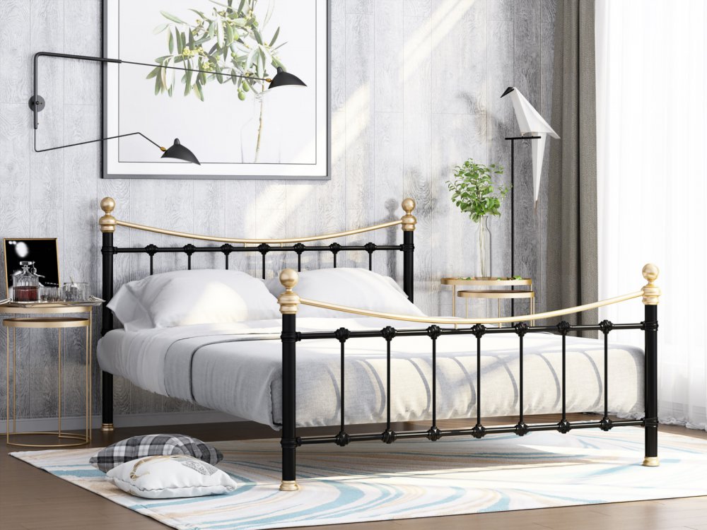 - Кровать металлическая Эльда Черный/Золото