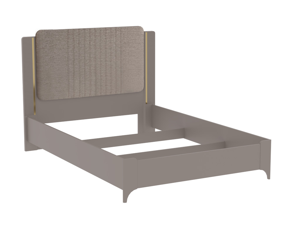 Кровать дополнена мягкой спинкой, выполнена в однотонной обивочной ткани (рогожка).