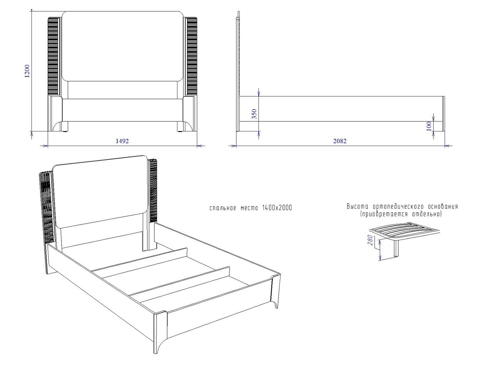 - Кровать 1400 Сиде Мокко (рогожка) без основания