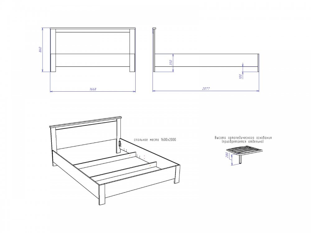 Спальное место: 1600*2000 мм