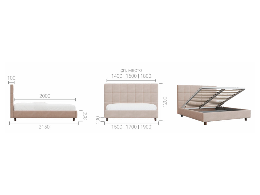 Кровать имеет подъемное ортопедическое основание и короб с дном из МДФ.