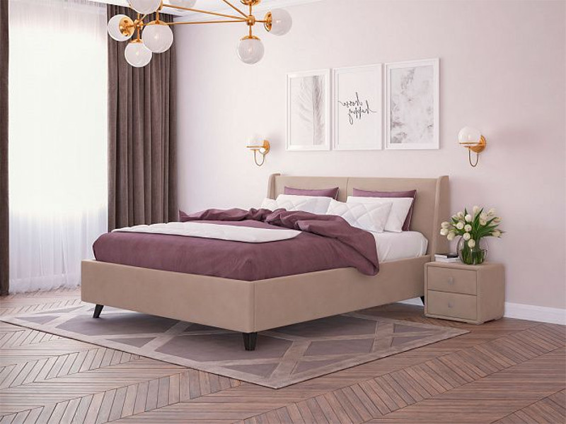 - Кровать Лорен с ПМ 1800х2000 мм микровелюр бежевый