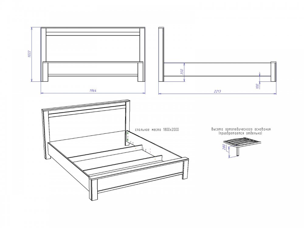 - Кровать Люкс 1800 Денвер без основания Риббек серый