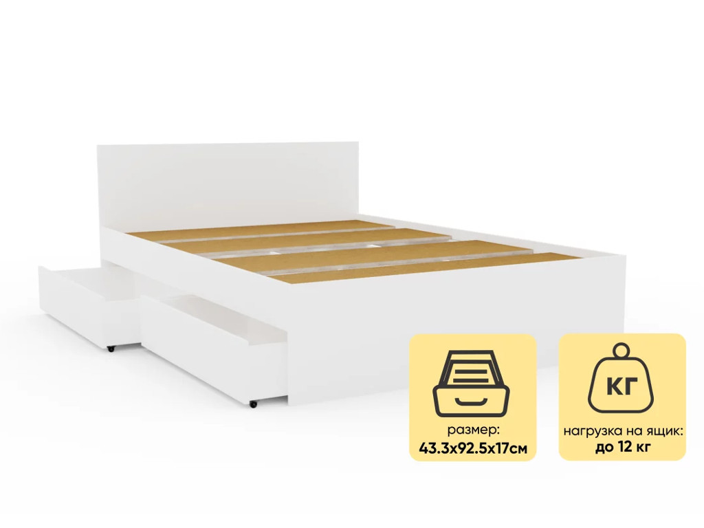 - Кровать Монблан с ящиками 140х200 см Белый