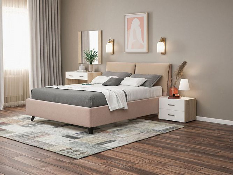 - Кровать Сандра с ПМ 1400х2000 мм микровелюр бежевый