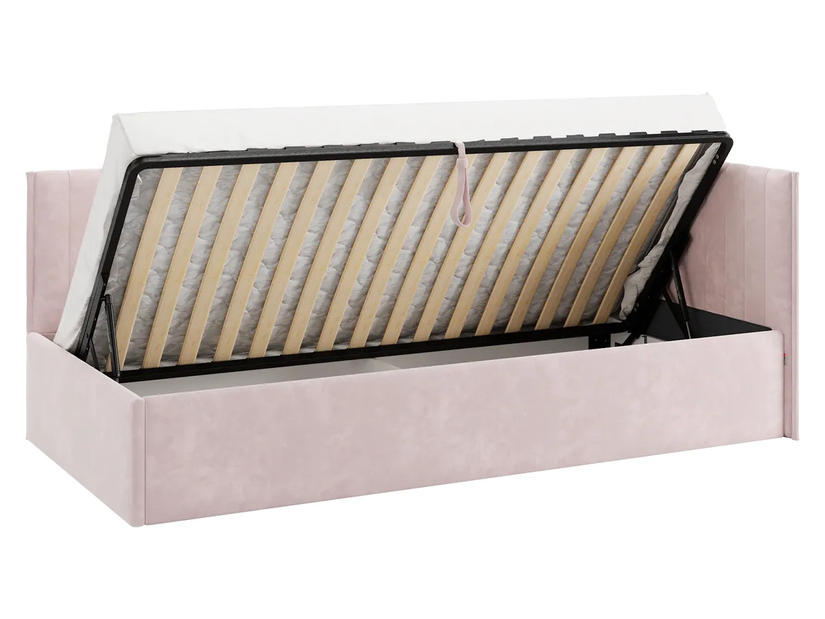 Кровать-тахта с подъемным механизмом Твикс цвет велюра нежно-розовый