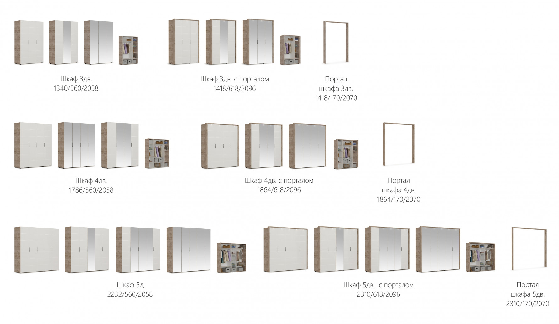 Спальня модульная, комплектуется по вашему выбору. Цена за комплект на главном фото шкаф 4 дверный ДЗЗД, портал к шкафу, тумба 1 ящ, кровать МИ 140 без ламелей, комод