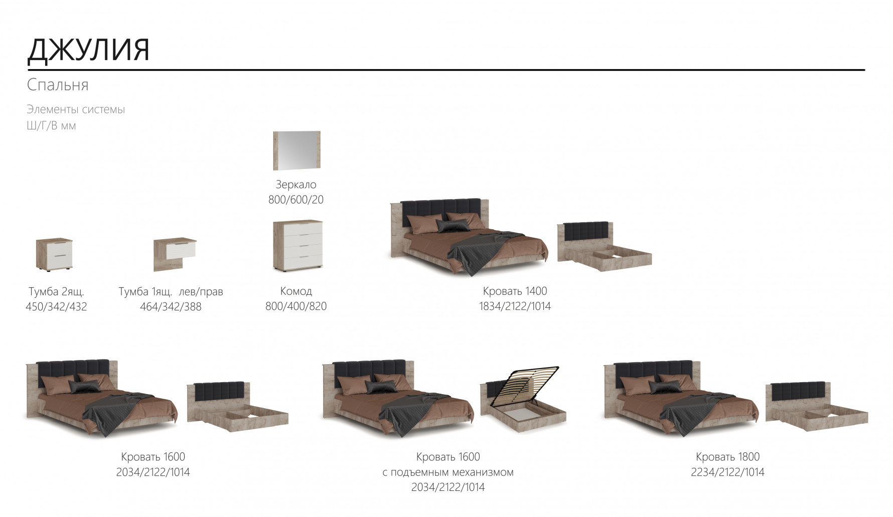 - Кровать Джулия МИ 140 без ламелей 1834*2122*1014 мм. Цена 18010 руб