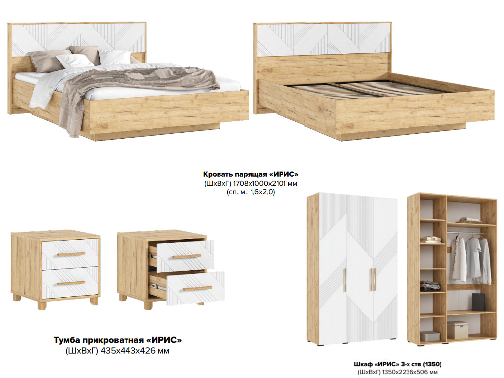- Спальня Ирис Браш Вайт/Дуб Крафт