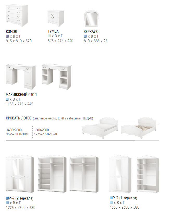 Спальня Лотос Лак белый