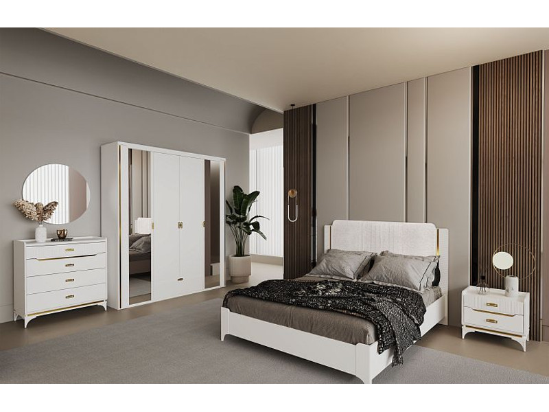 Цена за комплект: Тумба прикроватная, Кровать 1400, Ортопедическое основание 1400, Комод малый, Шкаф 4-дверный