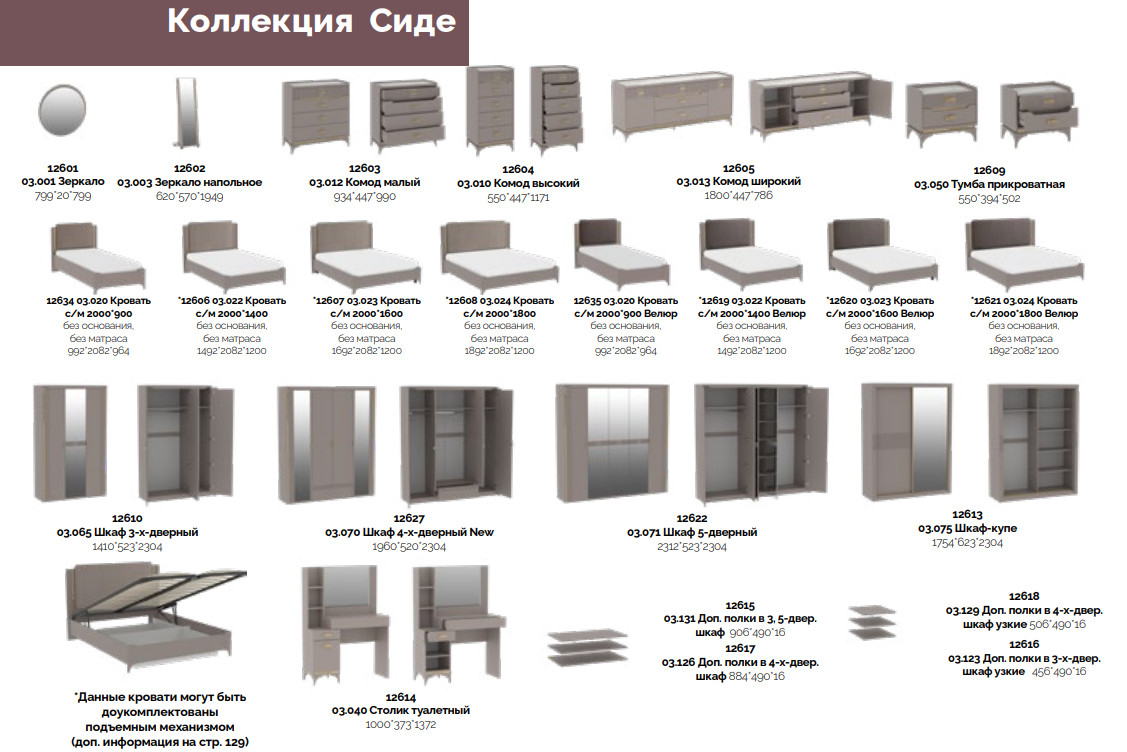 Цена за комплект: Тумба прикроватная (2шт), Комод малый, Кровать 1600, Ортопедическое основание 1600, Зеркало, Шкаф 4 дверный