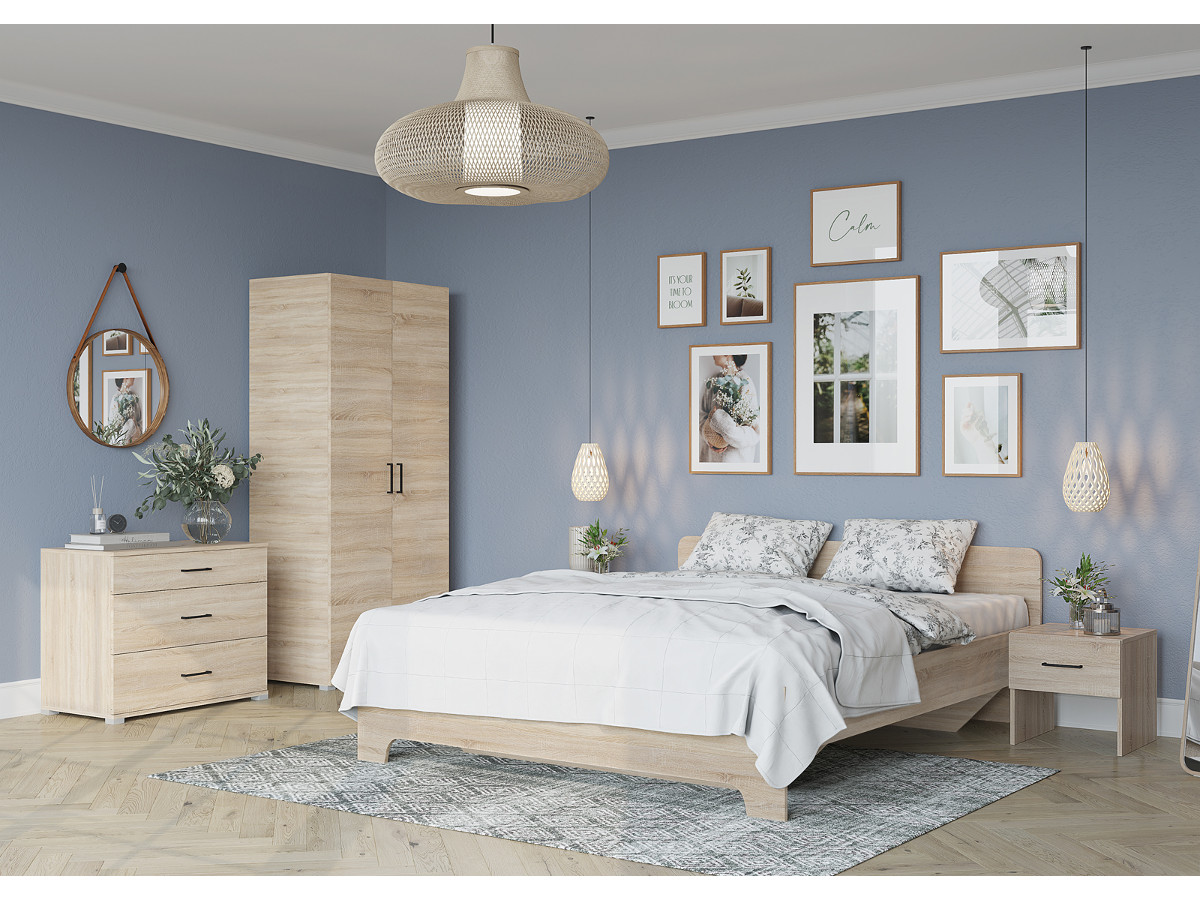 Цена за комплект: Шкаф 2 створчатый, Кровать + Основание, Комод, Тумбочка (2 шт)