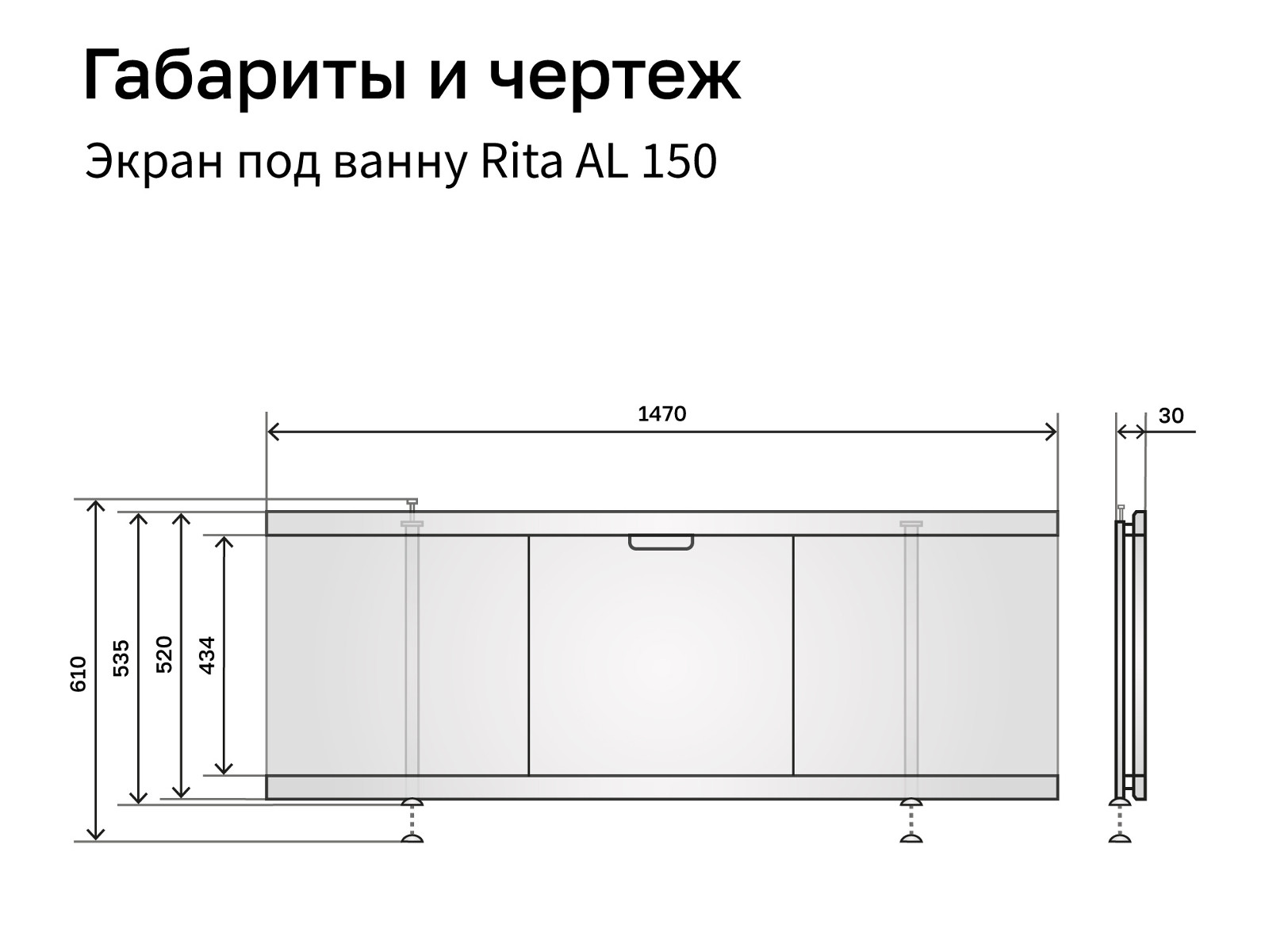 - Экран под ванну МДФ Rita AL 1500 мм