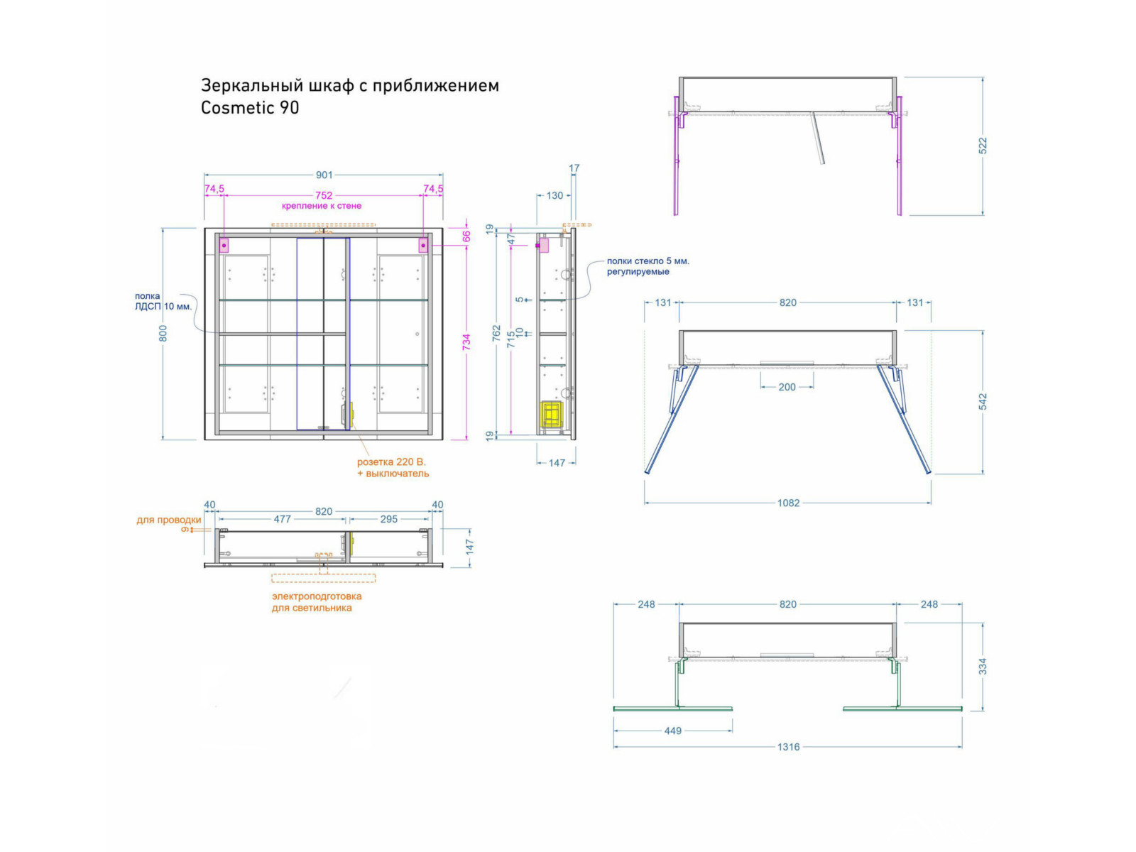 - Шкаф-трюмо зеркальный Cosmetic 90 без светильника
