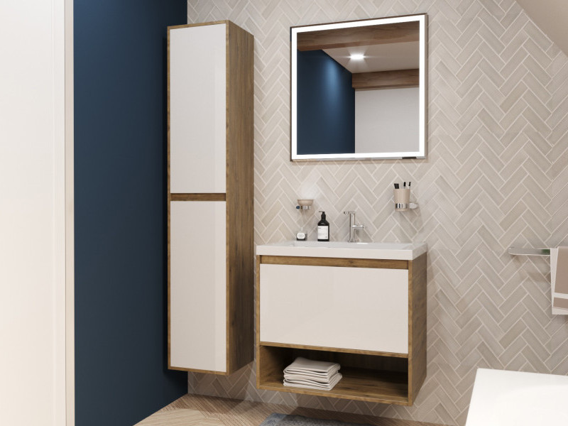 - Пенал подвесной Monaco Wood с открытой полкой левосторонний