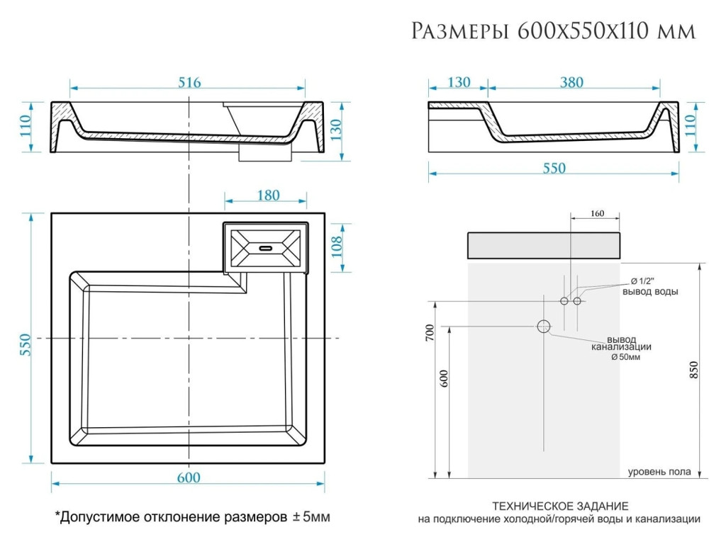 - Изготовлена из литьевого мрамора с покрытием гелькоут