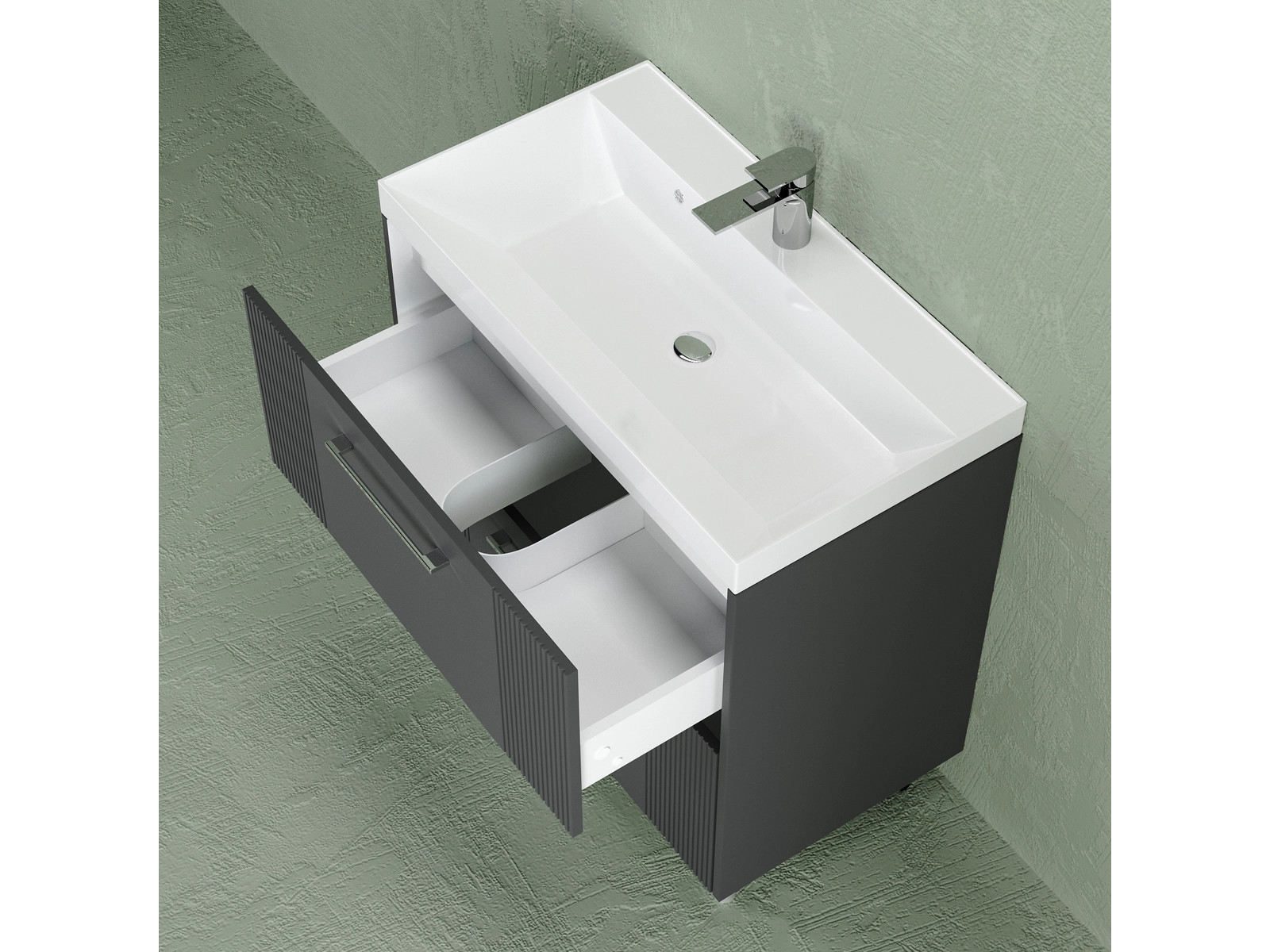 - Тумба Альба 80 напольная 2 ящика Слим 80 антрацит