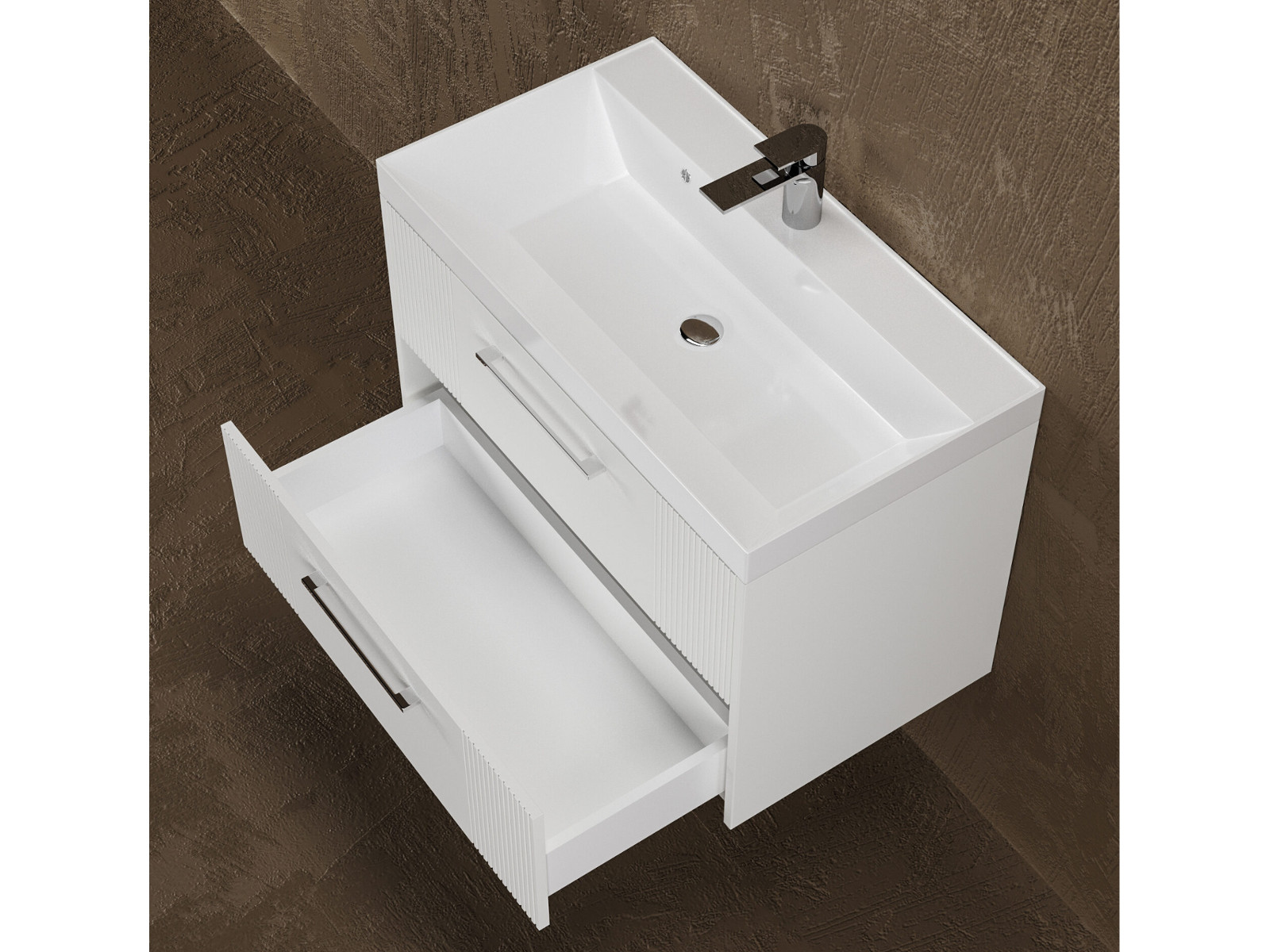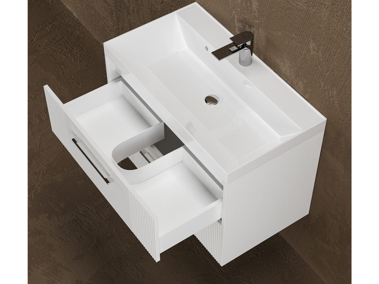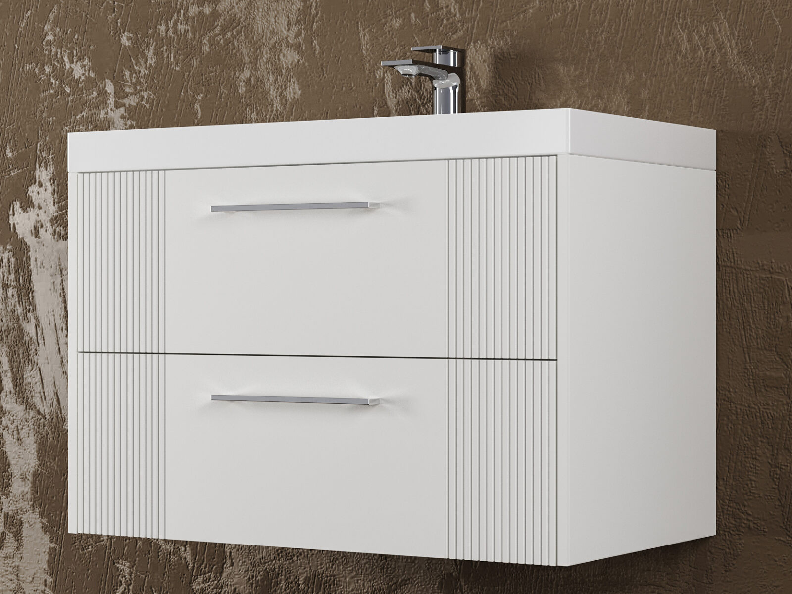 - Тумба Альба 80 подвесная 2 ящика раковина Слим 80 суфле