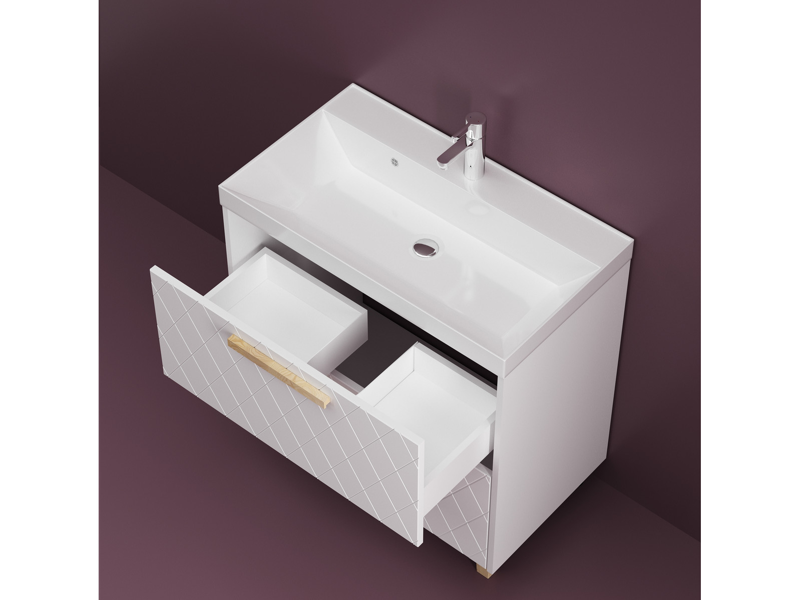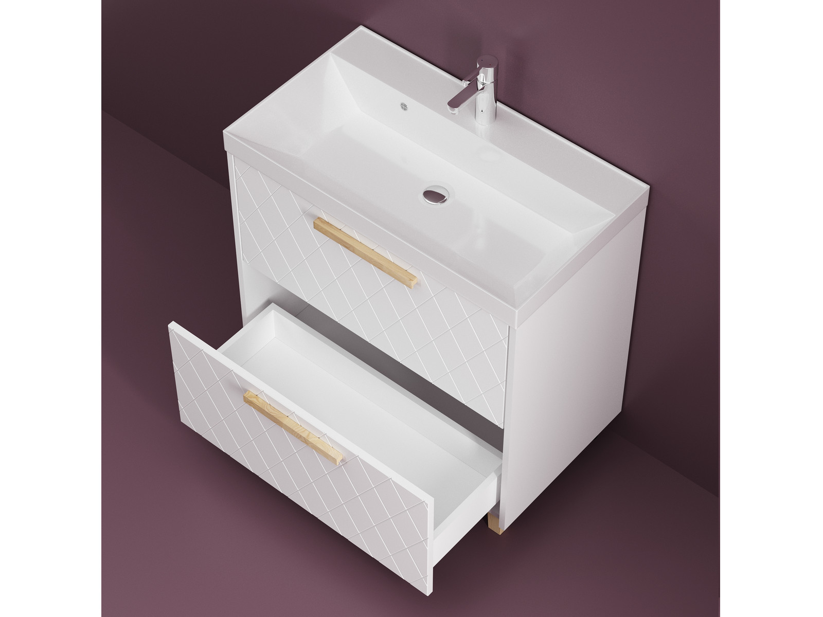 - Тумба Кристалл 60 напольная 2 ящика ручка дуб, раковина Океан 60 Суфле