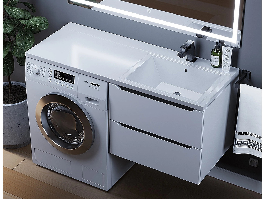 - Тумба под стиральную машину Uperwood Tanos 60 см подвесная правая белый/графит